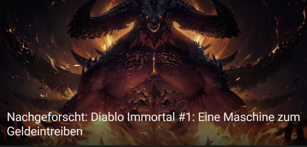 Der Gaming-Podcast „The Pod” hatte 2022 eine Themenwoche zum Thema Monetarisierung und Spielsucht. In der ersten Folge geben sie einen guten Überblick über das Thema am Beispiel des Spiels Diablo Immortal. Hören Sie sich auf jeden Fall die erste Folge an. Die Reihe geht aber auch noch weiter. Wenn Sie auf einen Beitrag hinter der Paywall stossen, so reden Sie mit mir. Ich kann Ihnen das downloaden.