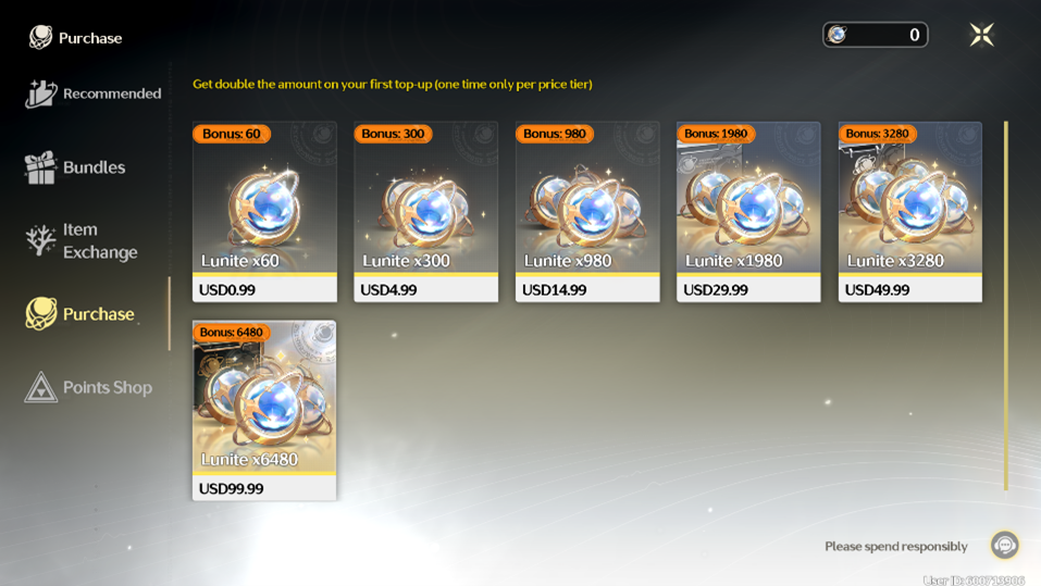 Diese Premium Währung findet man in fast allen Free-to-Play Spielen. Sie ist das A und O damit die Firma Geld verdient. Denn diese Währung kann man sich auch mit Echtgeld dazu kaufen. Wieder an dem Beispiel von Wutehring Waves gibt es gerade zwei wichtige Aspekte, die genannt werden müssen (Figure 6): Der «one time double reward» Bonus. Dieser Bonus verspricht die doppelte Belohnung für denselben Preis, in der Hoffnung, dass ein Konsument mit dem Gedanken an ein Schnäppchen zugreift und genau wegen diesem Bonus sein Geld ausgibt. Es wurde bewiesen, dass Spieler, die Geld in so einem Spiel ausgegeben haben, egal wie klein der Betrag gewesen ist, mit hoher Wahrscheinlichkeit wieder Geld in das Spiel investieren und dass die Hemmschwelle mit der Zeit sinkt und so immer grössere Beträge eingezahlt werden. Man kann dort auch von einer «Fuck-it» Grenze reden – wenn man an einem Punkt angekommen ist, wo man sich nur denkt: Ist doch auch egal, ich habe ja schon Geld ausgegeben.